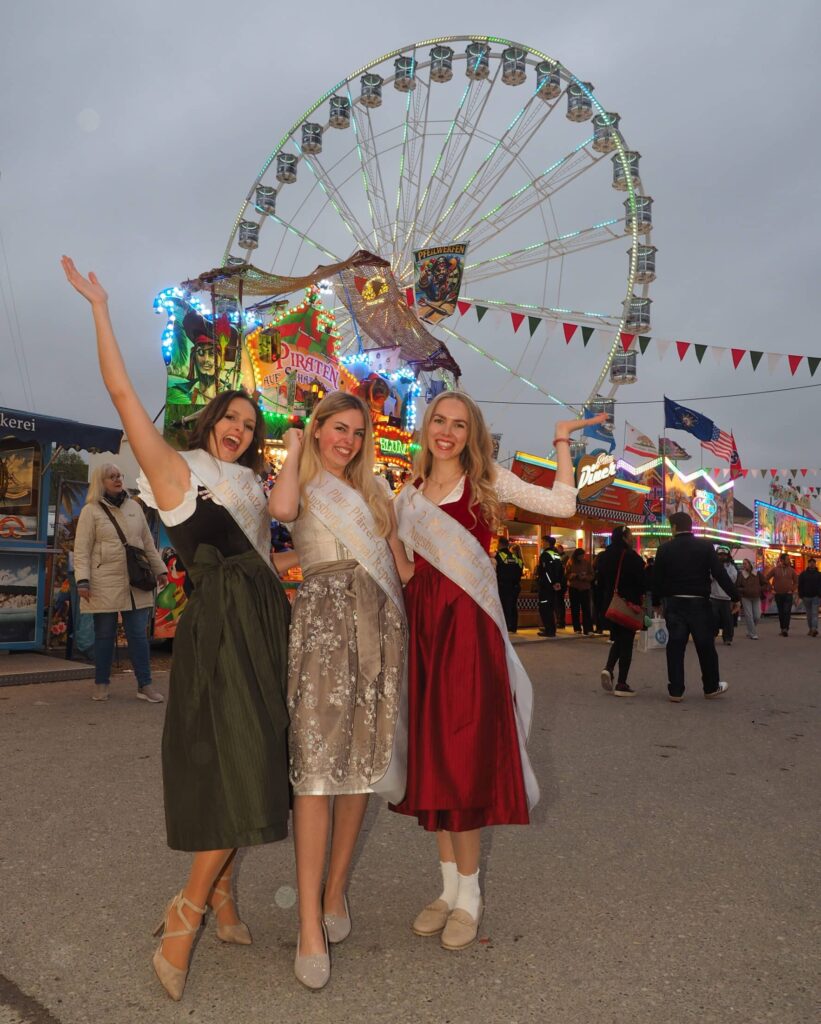 Die Top-Drei des Rankings: In der Mitte das Plärrer-Girl 2026, die 18-jährige Julia aus Augsburg; gefolgt von (re.) Selina aus Höchstadt a.d.D. und Flugbegleiterin Vanessa (24).