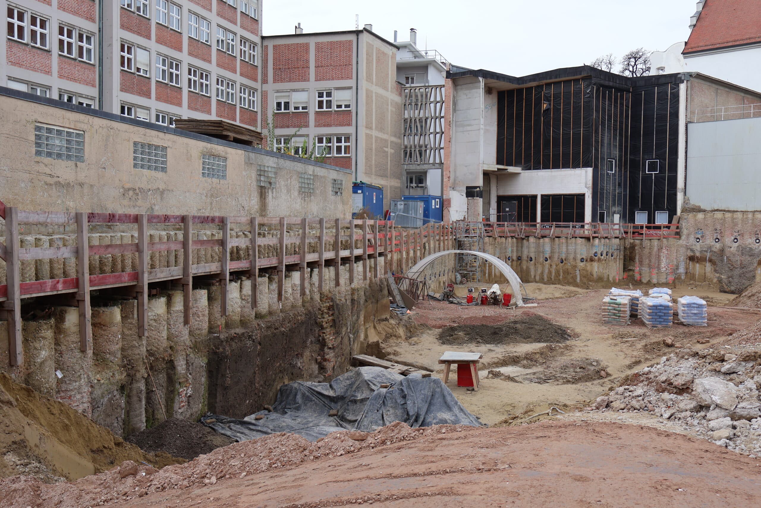 Die Bauarbeiten am Großen Haus des Staatstheaters Augsburg werden nach einer kurzen Unterbrechung fortgesetzt. Grund für die Pause war ein Anfangsverdacht auf Schadstoffe in der Luft, der sich jedoch nicht bestätigt hat.