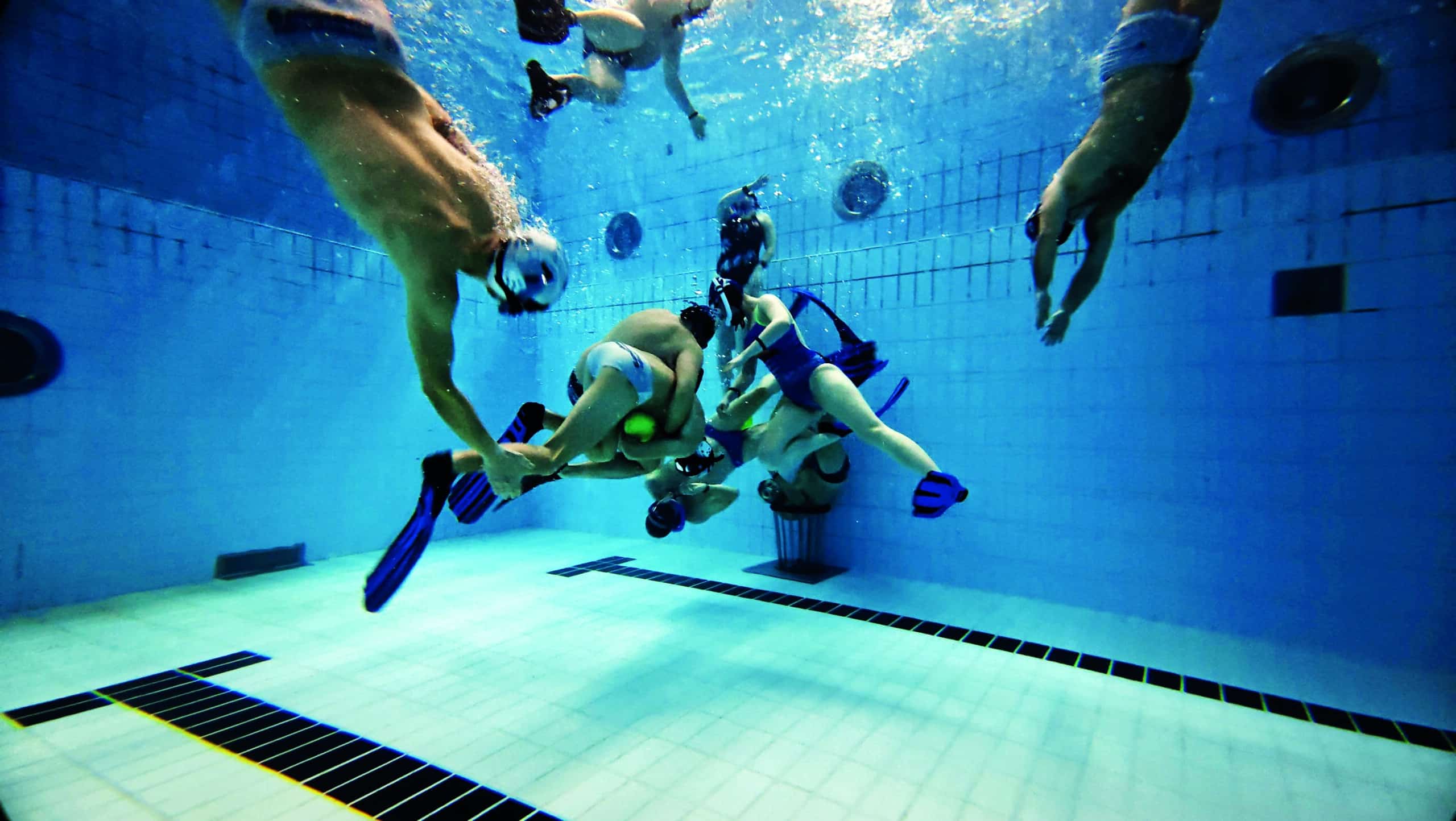 Man kann beim Unterwasser-Rugby auch unter seinem Gegner sein