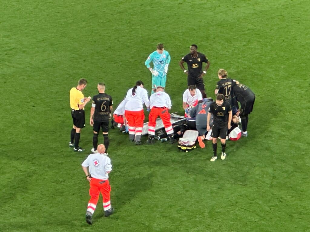 Geradezu Entsetzten hervorgerufen hatte die schwere Verletzung von Neuzugang Robin Fellhauer in der Nachspielzeit (90. + 7). Der war nach einem Kopfballduell mit Münchens Sacha Boey zusammengeprallt und fiel offensichtlich bewusstlos zu Boden. Absicht oder Nicht-Absicht, faire Entschuldigung Boeys oder nicht – solche Szenen möchte niemand sehen. Und auch die Info aus dem Uniklinikum, dass Fellhauer „nur“ eine schwere Gehirnerschütterung und kleinere Brüche am Schädelknochen habe – und vielleicht nur einige Wochen ausfällt – klingt wenig tröstlich. Zu diesem Zeitpunkt hatten schon Marius Wolf (39.) und Dimitris Giannoulis (62.) verletzungsbedingt das Feld verlassen müssen. Beide hatten sich augenscheinlich ohne Gegner-Einwirkung verletzt und konnten nicht weiterspielen. Mal schauen, ob es für einen Einsatz im nächsten Bundesliga-Spiel am Sonntag, 14. September, beim FC St. Pauli in Hamburg reicht.