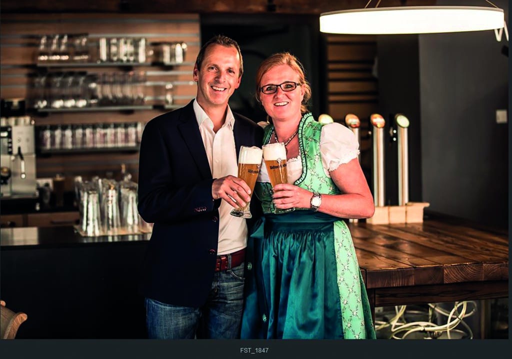 Stephanie Schmid: Die Brauerei Ustersbach ist ein Familienunternehmen, das seit nunmehr 420 Jahren besteht. Früher wurde in nahezu jedem Haushalt Brot gebacken und Bier gebraut, das war also mit Sicherheit was eher kleines. Unser ältester, bekannter Vorfahr war Wolf Schmid, der 1605 Erwähnung findet, als er den „Zapfen zu Ustersbach besteht“, also das Schankrecht des Brauhauses in Ustersbach erwirbt. Daher gilt das Jahr 1605 als der Beginn der Brautradition unserer Familie. Nach einer wechselvollen Geschichte, die wir in den Tagebüchern unserer Vorfahren nachlesen können, ist mein Vater Kaspar Schmid 1965 nach seiner Ausbildung zum Braumeister in den Familienbetrieb eingestiegen. Auch damals noch war das eine kleine alte Dorfbrauerei mit Wirtshaus. Meine Eltern, Kaspar und Claudia Schmid, haben mit viel Unternehmergeist und Fleiß den Betrieb zur heutigen Größe geführt. Ich selbst habe in Augsburg Wirtschaftswissenschaften studiert und bin seit 1994 im Betrieb tätig und heute Geschäftsführerin. Mein Mann ist als technischer Betriebsleiter für den reibungslosen Ablauf der Produktion verantwortlich, meine Schwester, die leider schon verstorben ist, war als Braumeisterin für die Bierqualität zuständig und hat die Qualitätssicherung in unserem Betrieb perfektioniert. Unsere Lage im Naturpark empfinden wir als Geschenk und Verpflichtung –Qualität, Nachhaltigkeit und eine verantwortungsvolle Geschäftsführung sind unsere Leitsterne für die Zukunft.