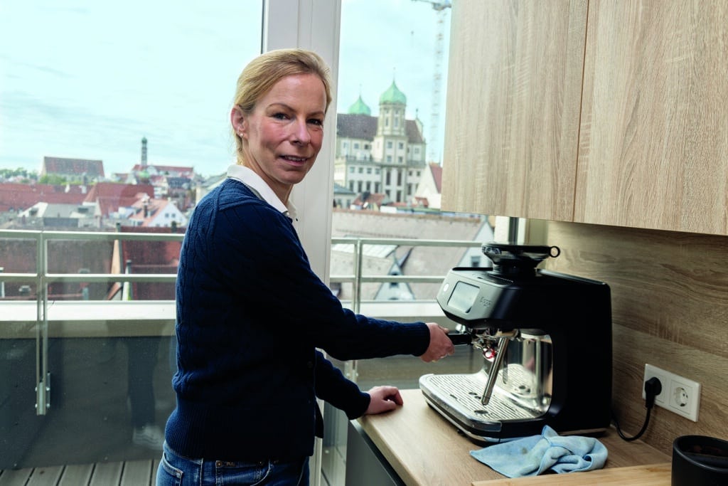 Die Neu-Augsburger Katharina und Elmar Beyer empfingen Anja Marks-Schilffarth (re.) in ihrem neuen Zuhause über den Dächern der Stadt.